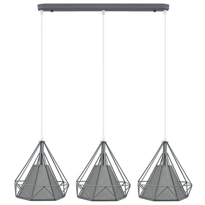 Lampa wisząca w kolorze szarym i możliwością dostosowania wysokości do 100 cm.