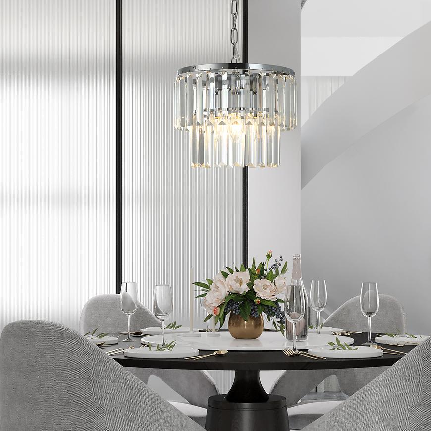 Lampa AMAZE AH-AME143CH LW3 to elegancka oprawa o chromowanym wykończeniu, która doskonale wpisuje się w nowoczesne aranżacje wnętrz. Jej geometryczna forma i precyzyjne wykonanie sprawiają, że świetnie sprawdzi się jako stylowy akcent w salonie, jadalni lub przedpokoju.