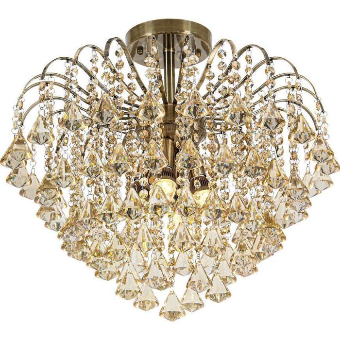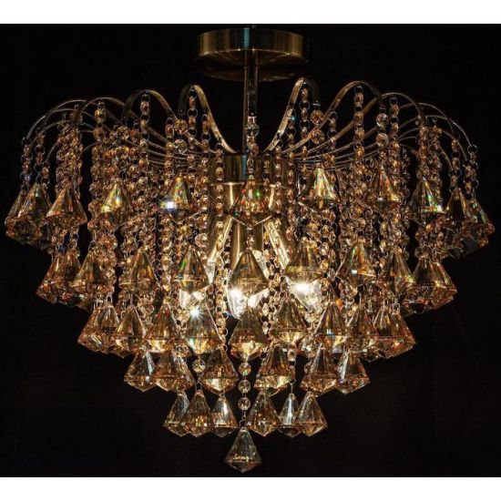 Lampa sufitowa wykonana z metalu w kolorze mosiądzu.
