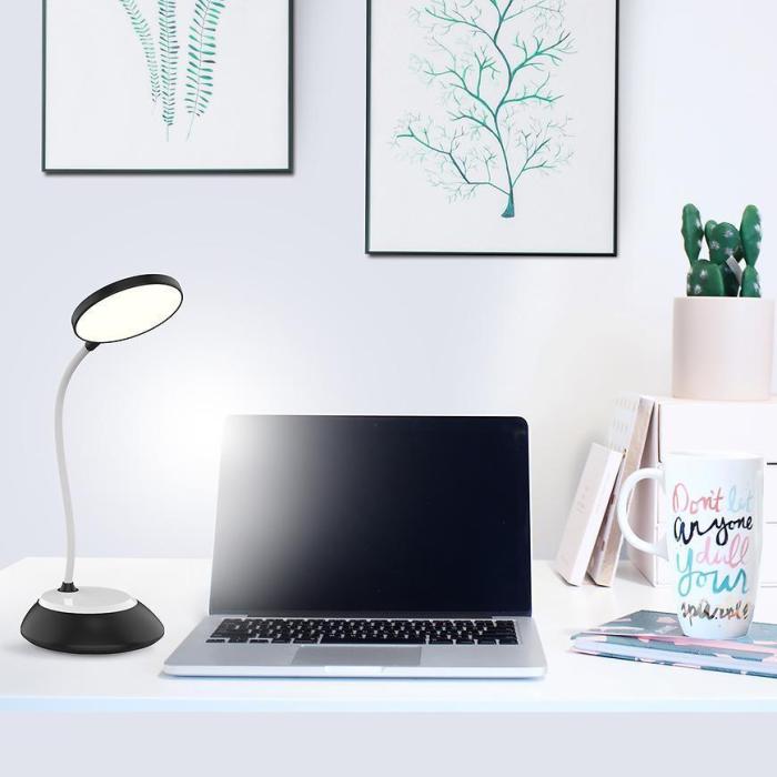 Głowicę lampki można wyginać co ułatwia ustawienie kąta padania światła. Posiada dotykowy włącznik oraz regulację jasności.