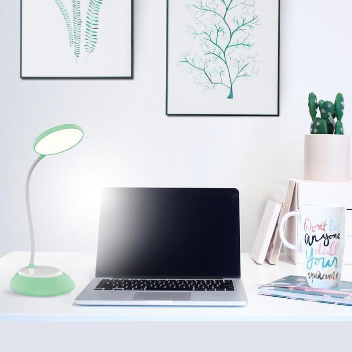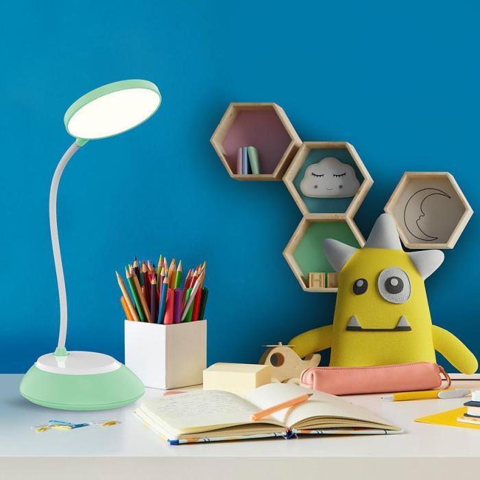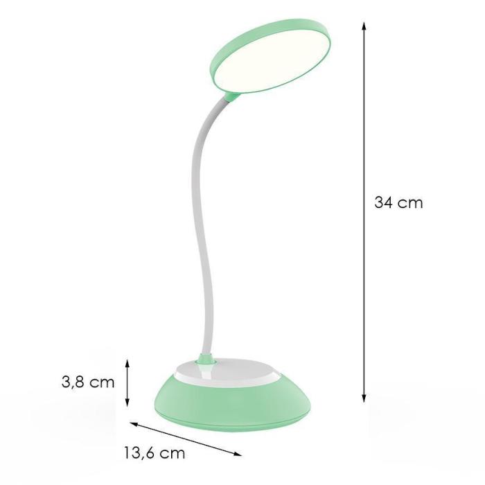Głowicę lampki można wyginać co ułatwia ustawienie kąta padania światła. Posiada dotykowy włącznik oraz regulację jasności.