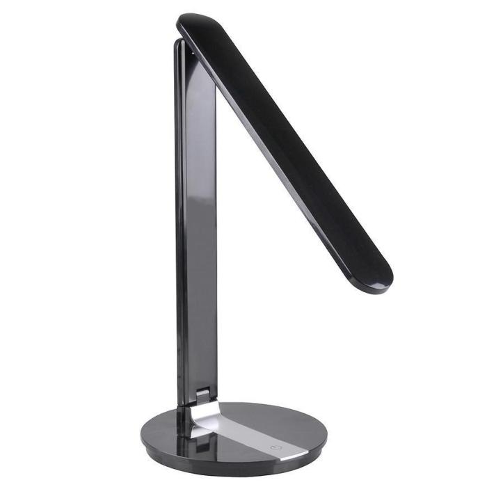 Lampka biurkowa została wykonana z tworzywa sztucznego w kolorze czarnym.