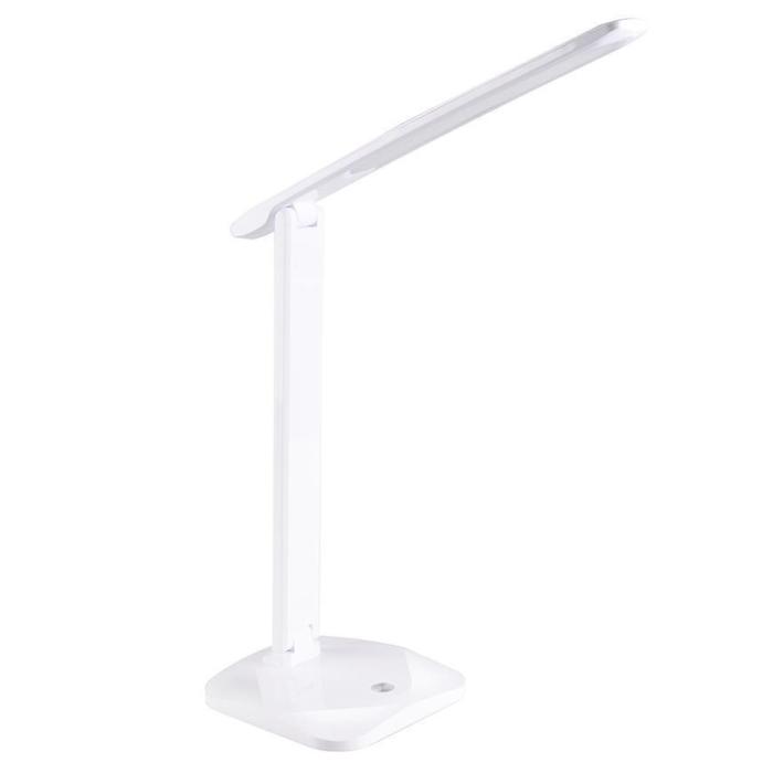 Lampka biurkowa została wykonana z tworzywa sztucznego w kolorze białym.