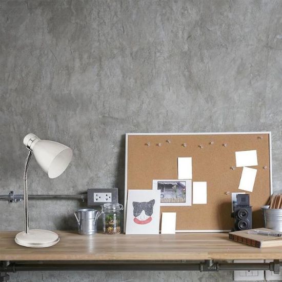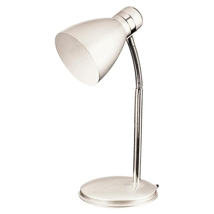 Lampka biurkowa została wykonana z metalu w kolorze białym.