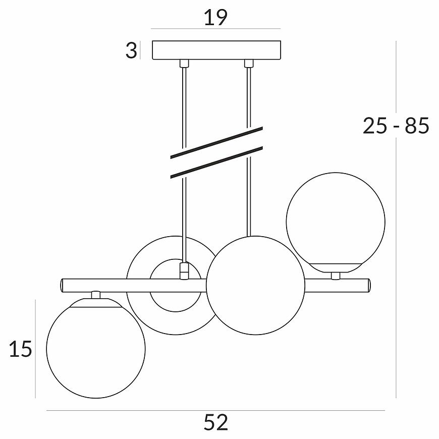 Lampa Ceres 2942/Z-A-4 LW4 wyposażona jest w regulowane zawieszenie o wysokości od 25 do 85 cm, co pozwala idealnie dopasować lampę do wysokości sufitu i funkcji pomieszczenia. Stałe źródła światła nie zmieniają kierunku świecenia, co podkreśla minimalistyczną i elegancką formę oprawy. Zasilanie sieciowe 230 V oraz klasa ochronności II i stopień szczelności IP20 gwarantują bezpieczne użytkowanie wewnątrz pomieszczeń.