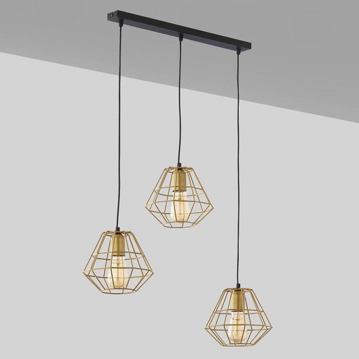 Nowoczesna, designerska lampa z metalowym, złotym kloszem - to modny i ciekawy dodatek w nowoczesnych, loftowych wnętrzach. Lampa posiada 3 punkty świetlne. Mnogość dostępnych na rynku żarówek z pewnością pozwoli stworzyć ciekawą, ścienną kompozycję. Wysokość lampy można wyregulować podczas montażu i dostosowac do wysokości całego pomieszczenia. Lampa nie tylko spełni funkcje ozdobną, ale także odpowiednio doświetli pomieszczenie.