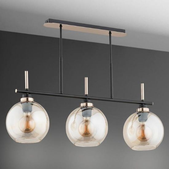 Lampa sufitowa wykonana z metalu w kolorze czarnym/złotym.