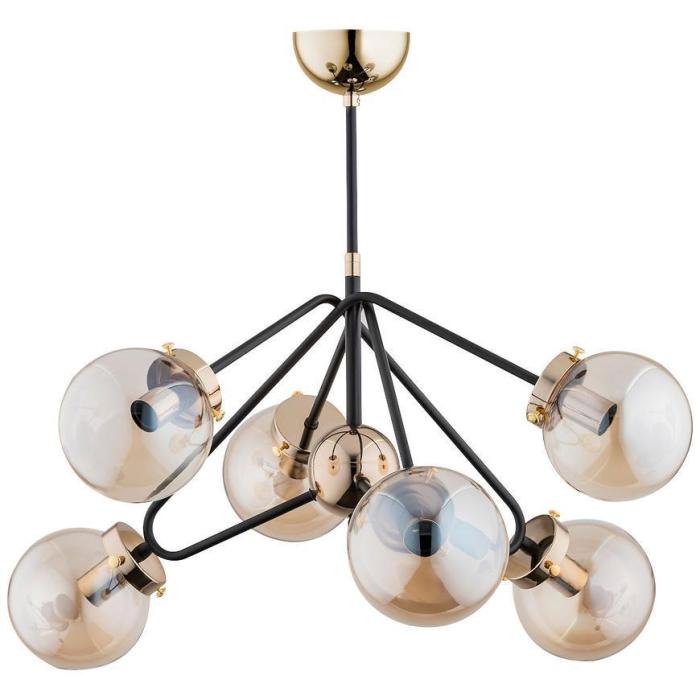 Lampa wisząca metalowa w kolorze czarny/złoty i szklane klosze.