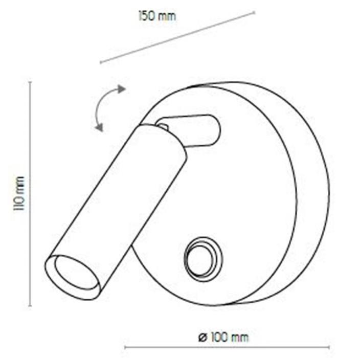 Kinkiet posiada 1 punkt świetlny LED oraz możliwość zmiany kierunku oświetlenia, co pozwala na precyzyjne doświetlenie wybranej części pomieszczenia. Lampa wyposażona jest w przełącznik, co ułatwia jej codzienne użytkowanie.