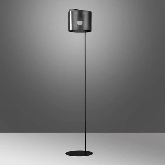 Lampa podłogowa wykonana z metalu w kolorze czarnym.