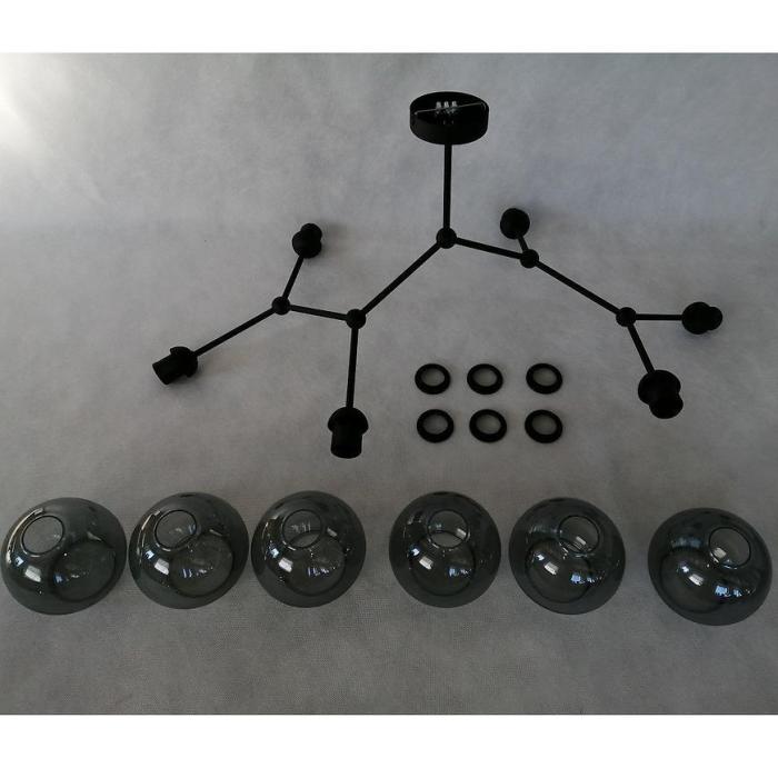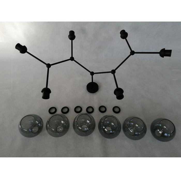 Stylowa i nowoczesna lampa będzie idealnym dodatkiem. Wykonana z metalu i szkła, posiada sześć źródeł światła z gwintem E27.
