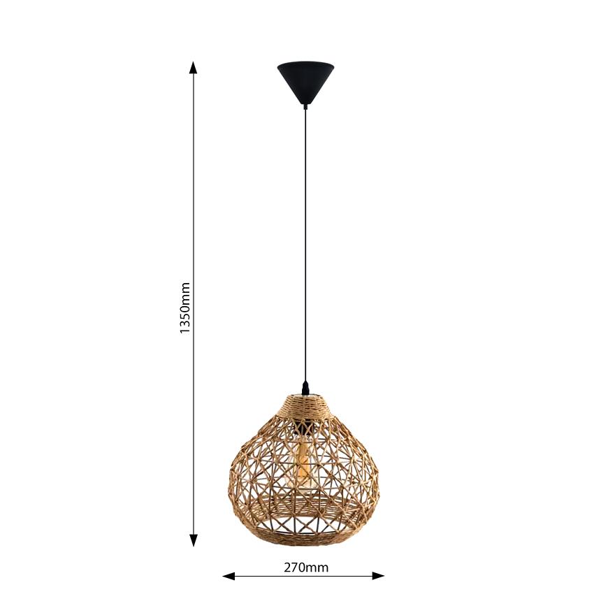 Wykonana z delikatnego sznurka o beżowym kolorze, lampa wprowadza do wnętrza lekkość i naturalność. Gwint E27 umożliwia swobodne dopasowanie różnych żarówek do własnych preferencji, jednak lampa nie jest dostarczana z żarówką, co daje Ci pełną swobodę wyboru.