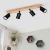 Lampy z kolekcji Hoba łączą w sobie funkcjonalność i efektowny design. Lampa w barwach czarni i drewna będzie świetnym, ozdobnym dodatkiem do pokoju dziennego, biura, czy innego pomieszczenia. CMożliwość zmiany kierunku oświetlenia pozwoli maksymalnie wykorzystać jej potencjał i doświetlić każdy kąt. Lampa znajdzie swoje miejsce we wnętrzach loftowych, industrialnych czy rustykalnych.