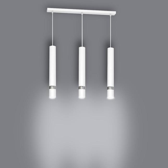 Miłośnicy eleganckiego designu z pewnością docenią lampę Joker. Lampa w białym kolorze ze srebnymi wstawkami sprawia wrażenie eleganckiej lampy w stylu glamour. Lampa posiada 3 punkty świetlne, zamknięte długich w tubach, połączonych listwą. Lampa sprawdzi się w takich pomieszczeniach jak: przedpokój, salon czy jadalnia.