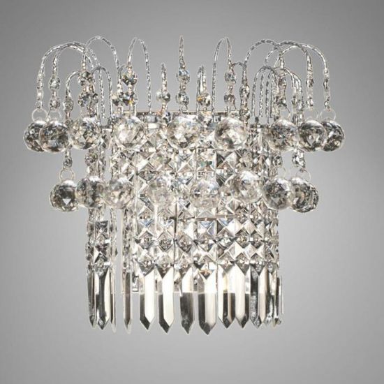 Kinkiet został wykonany z metalu w kolorze chromu i kryształki.