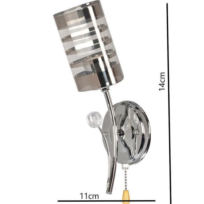 Kinkiet posiada wbudowany przełącznik, co pozwala na szybkie włączanie i wyłączanie światła bez konieczności korzystania z głównego włącznika. Konstrukcja z metalu i szkła gwarantuje trwałość i elegancki wygląd.