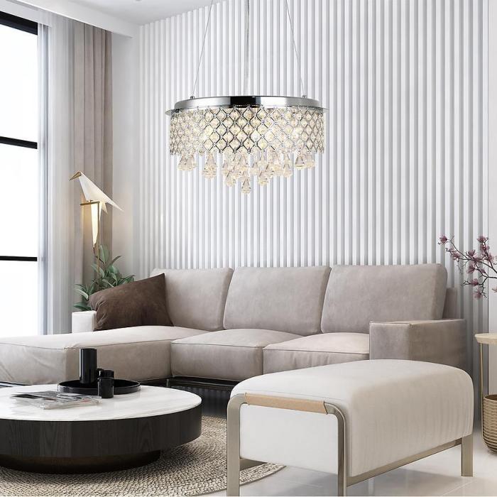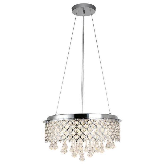 Lampa wisząca w kolorze srebrny chrom/transparentny wykonana ze stali chromowanej i kryształków.
