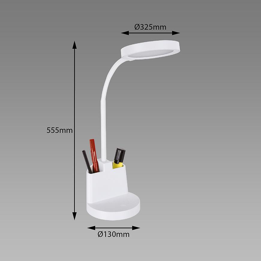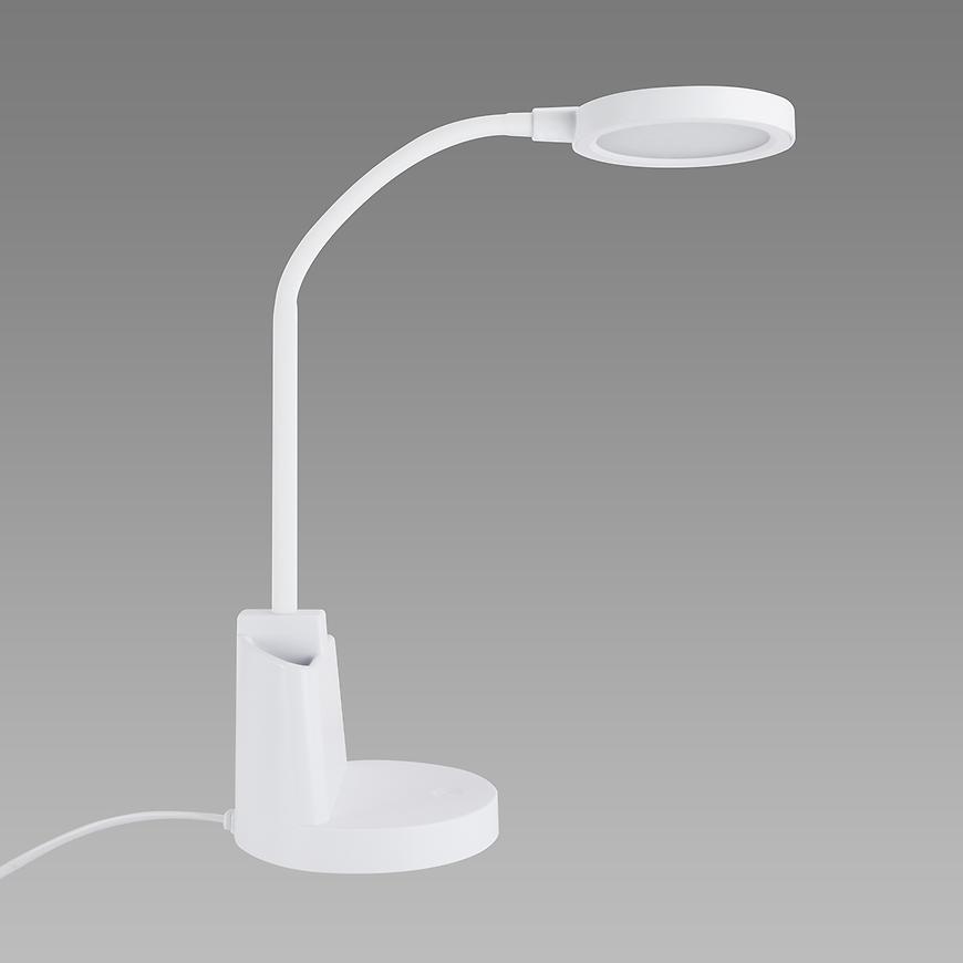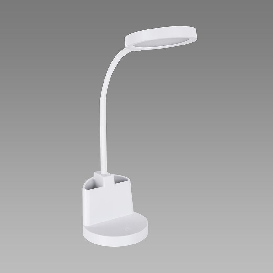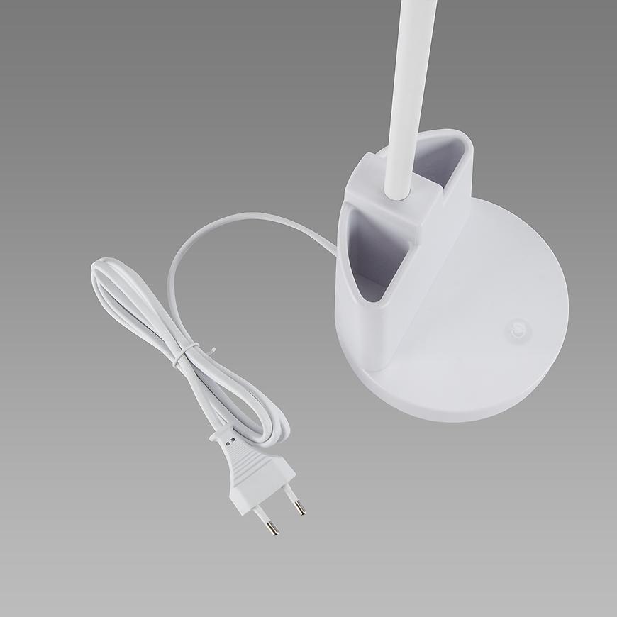 Lampa Labor LED White 03823 LB1 to nowoczesna lampa biurkowa w eleganckim, białym wykończeniu, wykonana ze stali. Wyposażona w energooszczędne źródło LED o mocy 8W i neutralnej barwie światła (520 lm), zapewnia jasne i komfortowe oświetlenie do pracy lub nauki. Lampa posiada funkcję przyciemniania oraz regulację kierunku światła, co pozwala na idealne dopasowanie do indywidualnych potrzeb. Zasilanie 230V, klasa szczelności IP20 i ochrona klasy II. Idealna do biura, gabinetu i pokoju młodzieżowego.