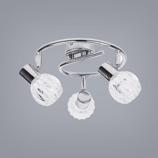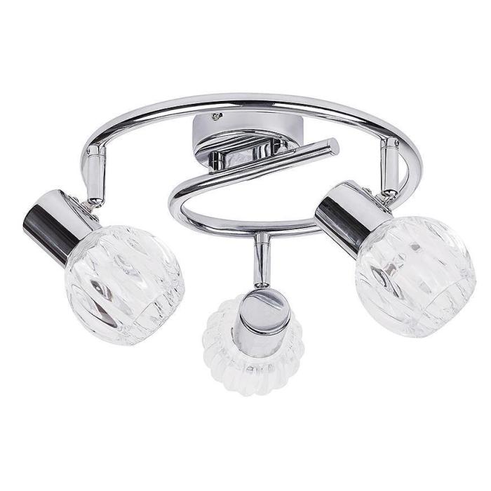 Lampa sufitowa wykonana z metalu w kolorze chromu.