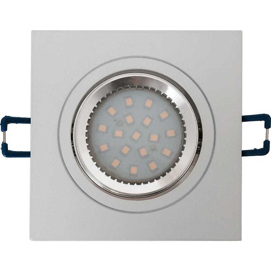 Nowoczesna lampa LED oczko o kwadratowym kształcie w eleganckim białym, matowym wykończeniu, wykonana z trwałego aluminium. Przeznaczona do montażu w sufitach podwieszanych z otworem montażowym o średnicy 7,5 cm. Lampa wyposażona w wymienne źródło światła GU10/MR16 o ciepłej barwie, która tworzy przytulną atmosferę w pomieszczeniu. Produkt cechuje się możliwością regulacji kierunku oświetlenia, co pozwala na precyzyjne doświetlenie wybranych stref. Oczko ma wymiary 9x9 cm oraz głębokość 2,1 cm, a jego niskie zużycie energii potwierdza klasa efektywności energetycznej od A++ do E. Waga lampy to zaledwie 0,17 kg, a jej konstrukcja posiada klasę szczelności IP20. W zestawie znajduje się źródło światła, natomiast brak jest kostki przyłączeniowej.