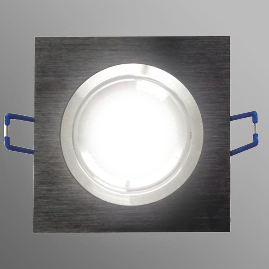 Stylowa lampa LED oczko w nowoczesnym, kwadratowym kształcie o wykończeniu w czarnym, szczotkowanym aluminium. Idealna do sufitów podwieszanych z otworem montażowym 7,5 cm, o wymiarach 9x9 cm i głębokości 2,1 cm. Wyposażona w wymienne źródło światła GU10/MR16 o ciepłej barwie, które zapewnia przyjemne i energooszczędne oświetlenie. Lampa umożliwia regulację kierunku światła, co pozwala na precyzyjne doświetlenie wybranych przestrzeni. Produkt cechuje się klasą efektywności energetycznej A++ do E oraz klasą szczelności IP20. Waga lampy wynosi 0,19 kg. W zestawie znajduje się źródło światła, natomiast nie zawiera kostki przyłączeniowej.