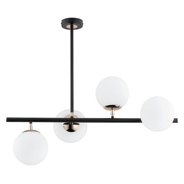 Lampa wisząca metalowa w kolorze czarnym/złotym ze szklanymi kloszami.