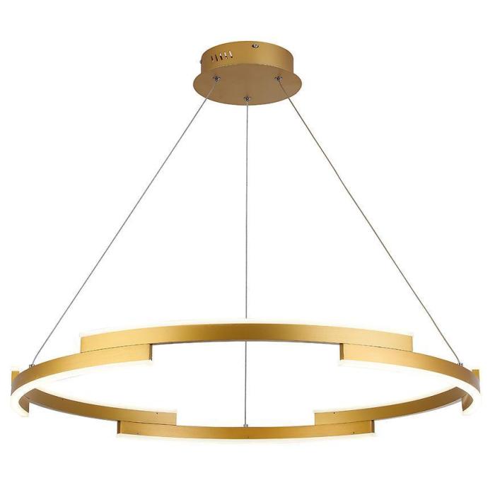 Lampa wisząca w kolorze złotym wykonana ze stali lakierowanej i akrylu.