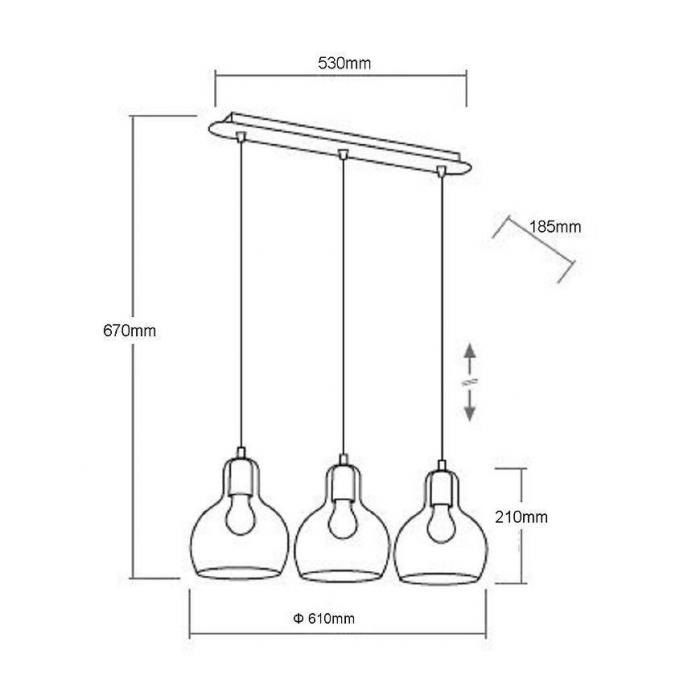 Nowoczesna, designerska Lampa Mango to modny i ciekawy dodatek w nowoczesnych wnętrzach. Lampa posiada 3 punkty świetlne, zamknięte w szklanych, ozdobnych kloszach na kształt dużej żarówki Wysokość lampy można wyregulować podczas montażu i dostosowac do wysokości całego pomieszczenia. Lampa nie tylko spełni funkcje ozdobną, ale także odpowiednio doświetli pomieszczenie.