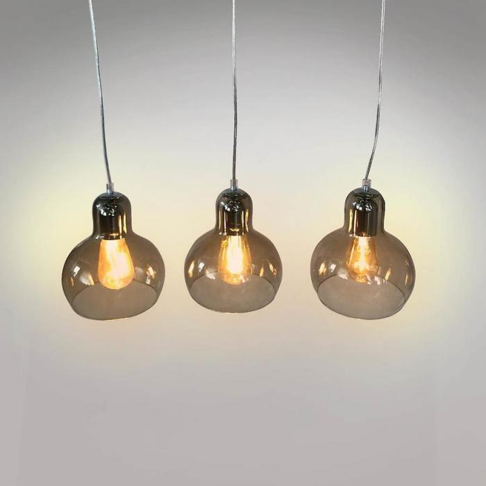 Nowoczesna, designerska Lampa Mango to modny i ciekawy dodatek w nowoczesnych wnętrzach. Lampa posiada 3 punkty świetlne, zamknięte w szklanych, ozdobnych kloszach na kształt dużej żarówki. Wysokość lampy można wyregulować podczas montażu i dostosowac do wysokości całego pomieszczenia. Lampa nie tylko spełni funkcje ozdobną, ale także odpowiednio doświetli pomieszczenie.