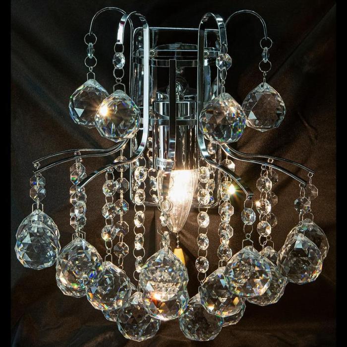 Kinkiet w kolorze mosiądzu z kryształkami.