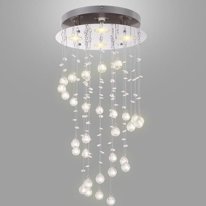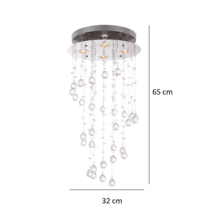 Lampa sufitowa metalowa w kolorze chromu oraz akrylowe kryształki.