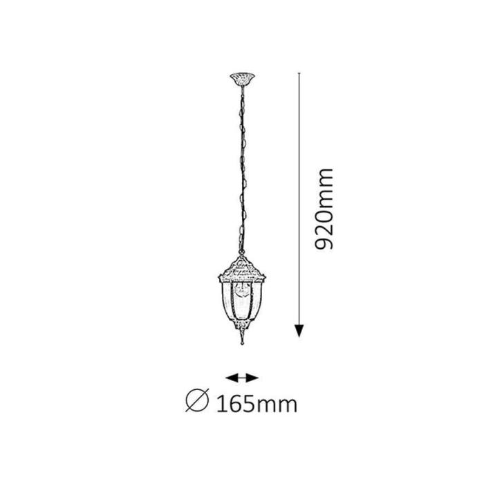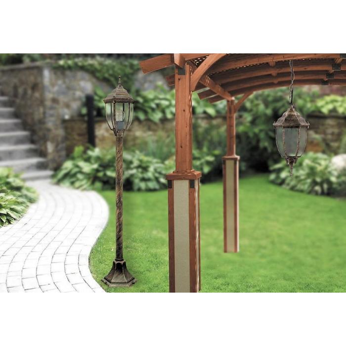 Lampa ogrodowa Nizza 8454 LW1 stare złoto to klasyczna wisząca lampa, która świetnie wkomponuje się w zewnętrzny wystrój domu czy ogrodu. Uniwersalna jakość lampy łączy ze sobą funkcjonalność i efektowny wygląd. Lampa oświetli Twój ogród, wejście do domu lub inne, dowolne miejsce na zewnątrz. Oprawa wykonana jest w kolorze starego złota.