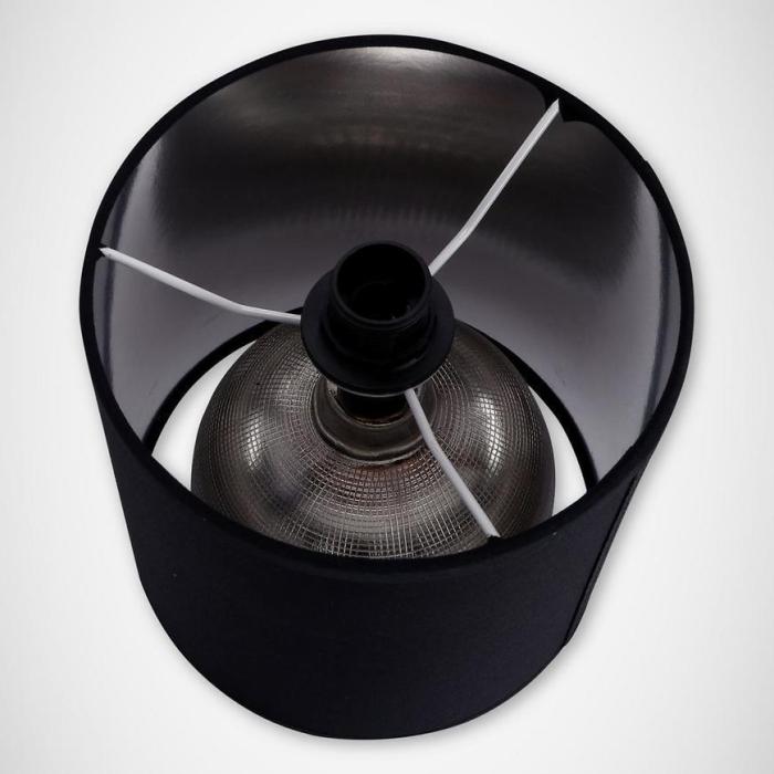 Lampa stołowa w kolorze srebrno-czarnym. Lampka posiada włącznik.