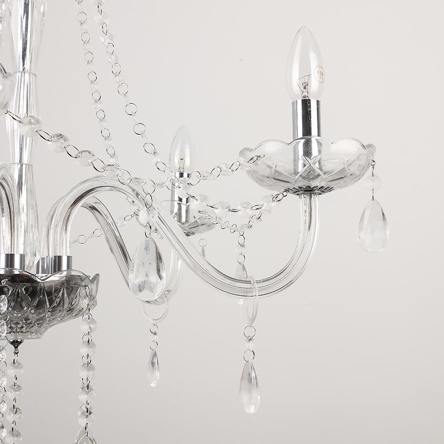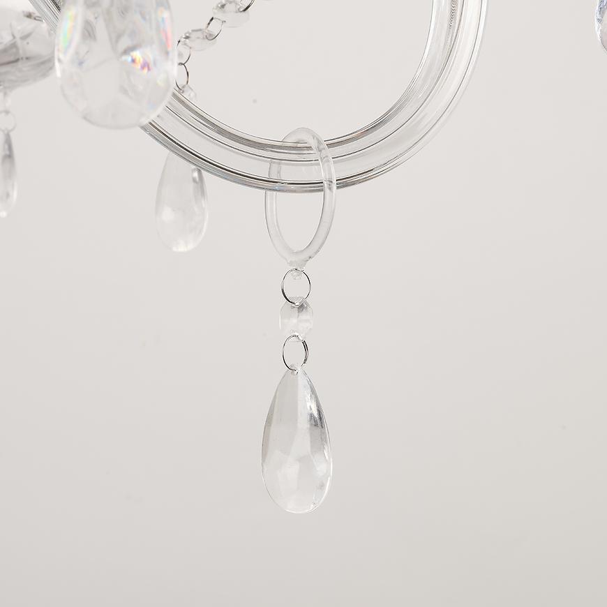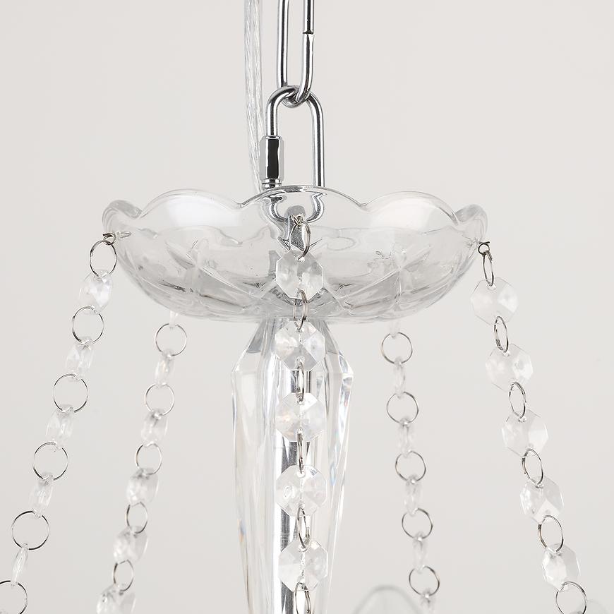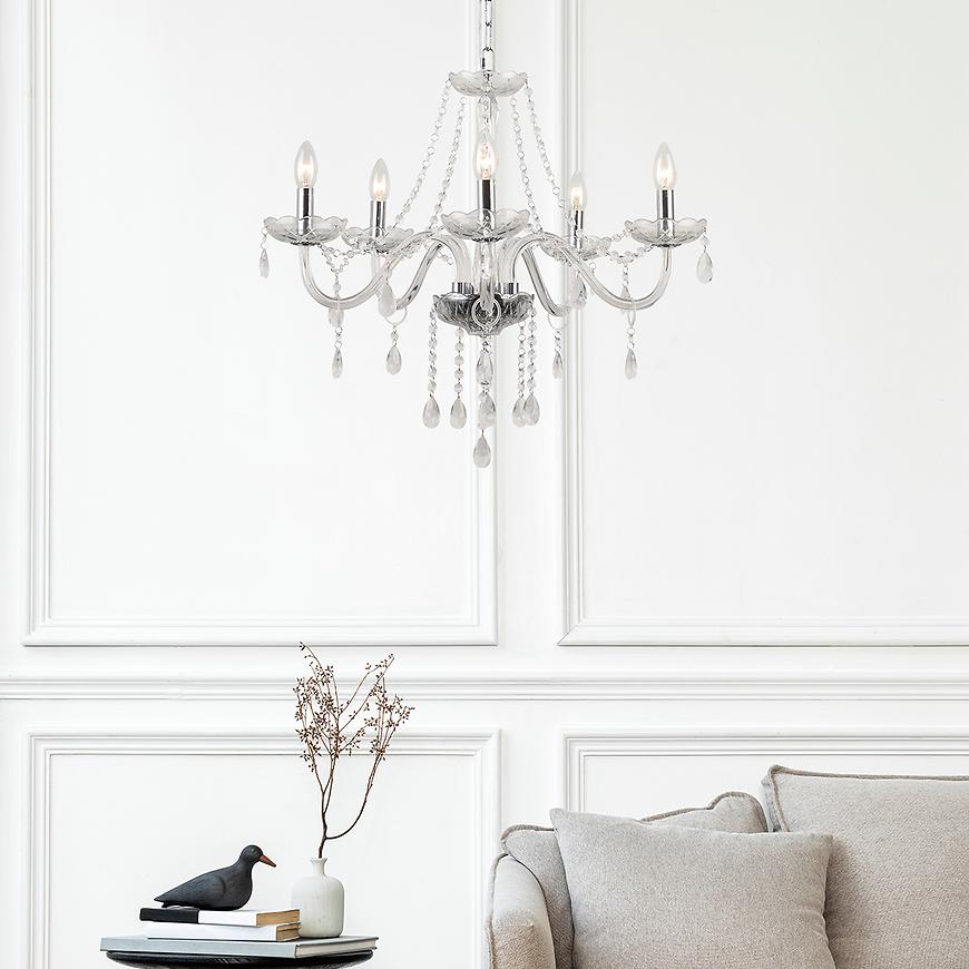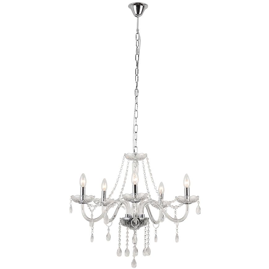 Posiada pięć punktów świetlnych, wyposażonych w gwint E14, co pozwala na zastosowanie żarówek o maksymalnej mocy 5x20 W. Dzięki funkcji regulacji wysokości, lampa może być dopasowana do różnych wysokości sufitów, co zapewnia elastyczność montażu. Przeznaczona do zasilania sieciowego o napięciu 230V, z klasą szczelności IP20 oraz klasą ochronności II, jest idealnym wyborem do suchych wnętrz.