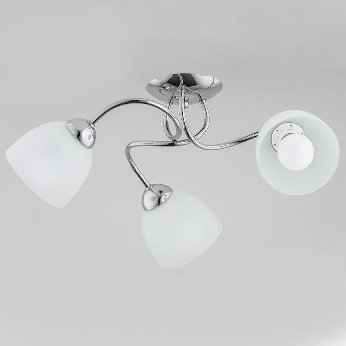 Lampa sufitowa metalowa w kolorze chromu oraz szklane klosze.