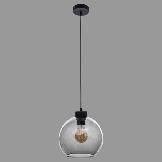 Lampa wisząca metalowa w kolorze czarnym i szklanym kloszem.