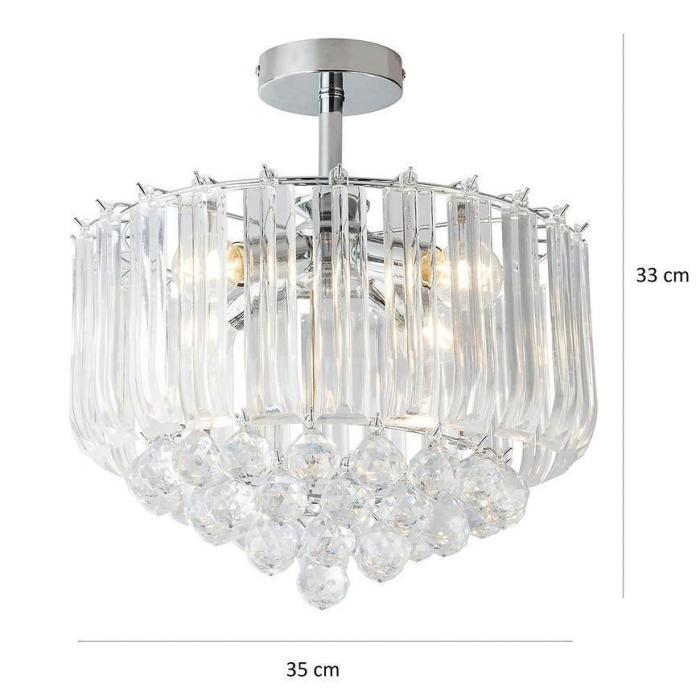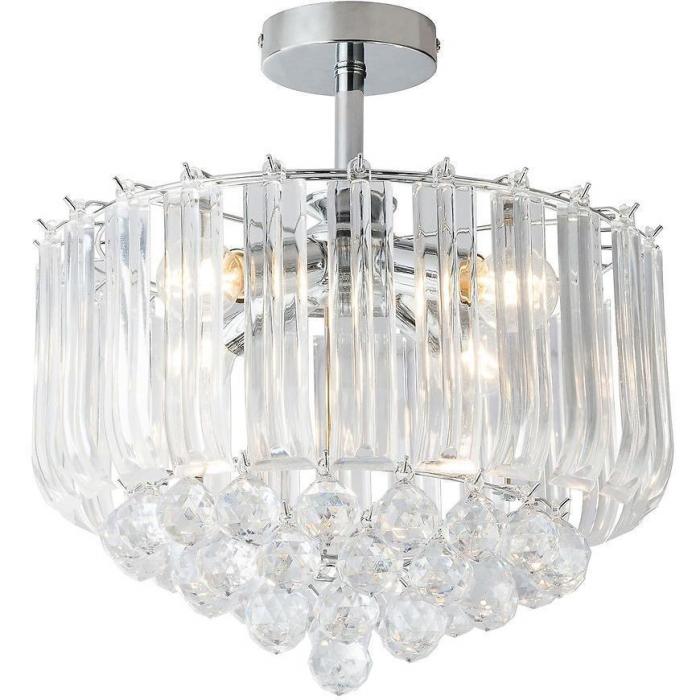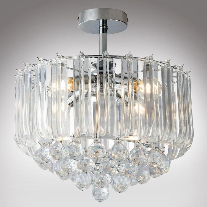 Elegancja i klasa to jedne z podstawowych cech stylu glamour. Ta lampa z pewnością trafi w gusta zwolenników szykownych wnętrz z klasą. Lampa świetnie zaprezentuje się w salonie, jadalni czy przedpokoju. Posiada cztery punkty świetlne, zamkniętych w ozdobnym, szklanym kloszu z kryształowymi elementami. Lampa może pełnić funkcję ozdobną, ale także odpowiednio doświetli pomieszczenie. Kryształowa konstrukcja klosza odpowiednio rozproszy wydobywające się światło, tworząc niepowtarzalny klimat. Do lampy należy dokupić żarówki we własnym zakrwsie.