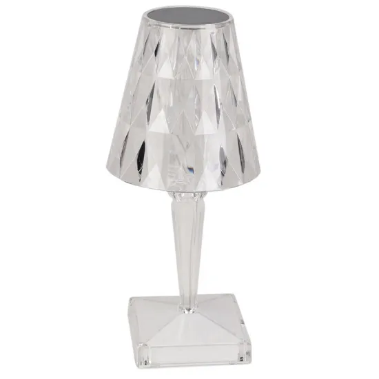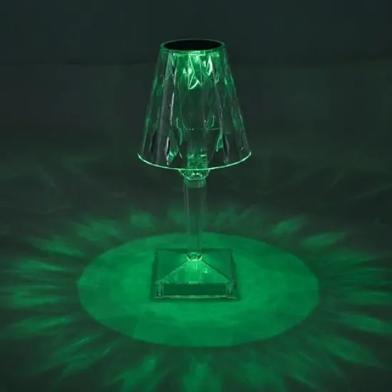 Lampa stołowa Cristal Diamond LB1 wyróżnia się nowoczesnym, dekoracyjnym designem. Przezroczysta forma oraz wbudowane LED RGB pozwalają uzyskać efektowne i kolorowe oświetlenie, idealne do salonu, pokoju dziennego, sypialni czy biura. Lampa nie posiada regulacji wysokości ani funkcji przyciemniania, jednak prostota obsługi i możliwość zmiany barwy światła sprawiają, że jest świetnym dodatkiem dekoracyjnym.
