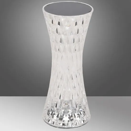 Lampa stołowa Cristal Vaso LB1 łączy nowoczesny wygląd z funkcjonalnym, przenośnym oświetleniem LED RGB. Kompaktowe wymiary i lekka konstrukcja umożliwiają ustawienie jej w dowolnym miejscu, a bateryjne zasilanie sprawia, że lampa jest mobilna i wygodna w użyciu. Doskonała jako dekoracyjne oświetlenie w nowoczesnych i designerskich wnętrzach.