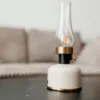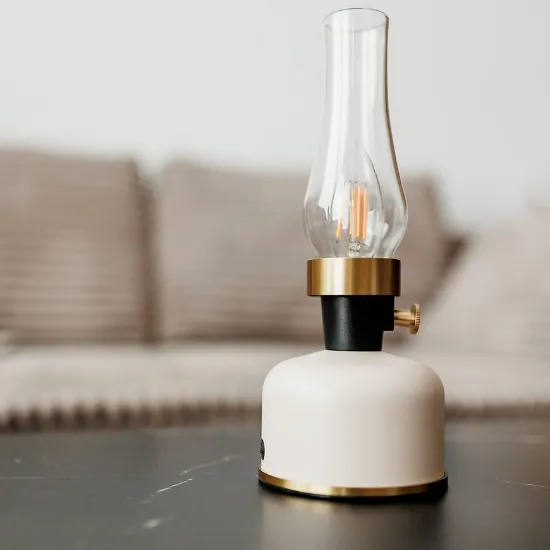 Lampa stołowa „naftowa” OLIA USB IP44 w eleganckim kolorze beżowym łączy klasyczny styl z nowoczesną funkcjonalnością. Odporna na zachlapania (IP44) i zasilana przez USB, sprawdzi się zarówno wewnątrz, jak i na zewnątrz. Idealna do stworzenia przytulnej atmosfery na tarasie, balkonie czy w salonie.
