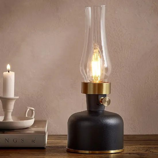 Lampa stołowa „naftowa” OLIA USB IP44 w kolorze czarnym to nowoczesny i stylowy akcent do każdego wnętrza i przestrzeni zewnętrznej. Dzięki klasie odporności IP44 jest odporna na zachlapania, a zasilanie przez USB zapewnia wygodę i mobilność. Idealna na taras, balkon lub jako dekoracja w salonie.