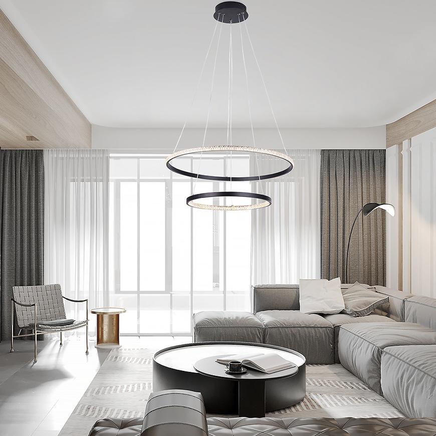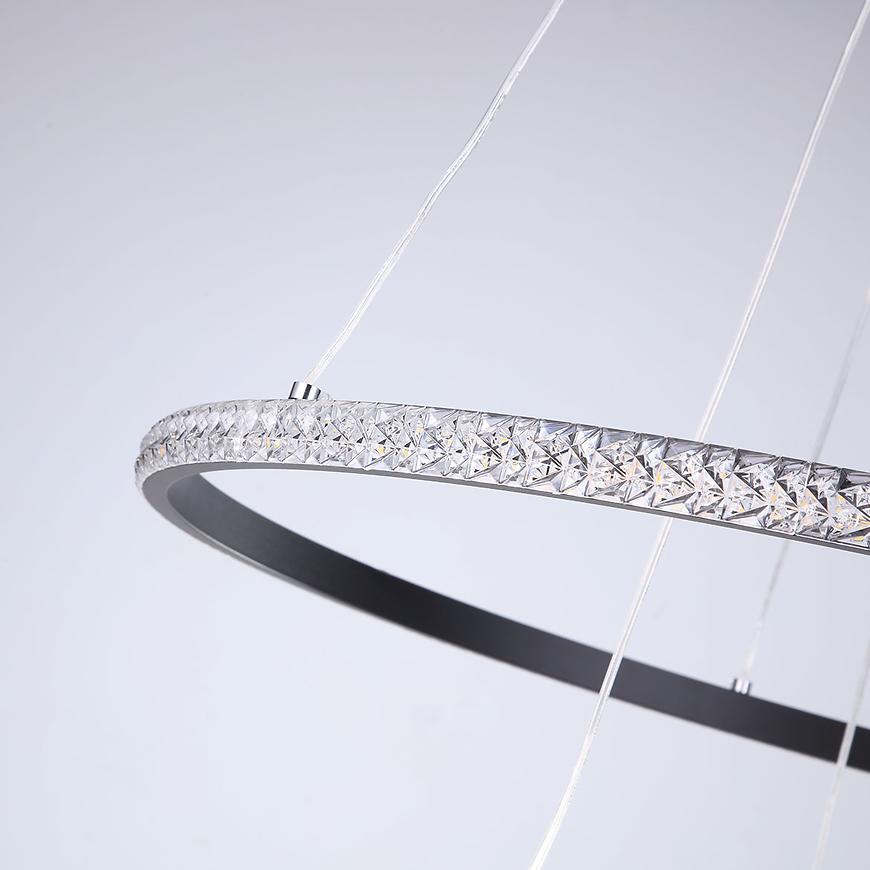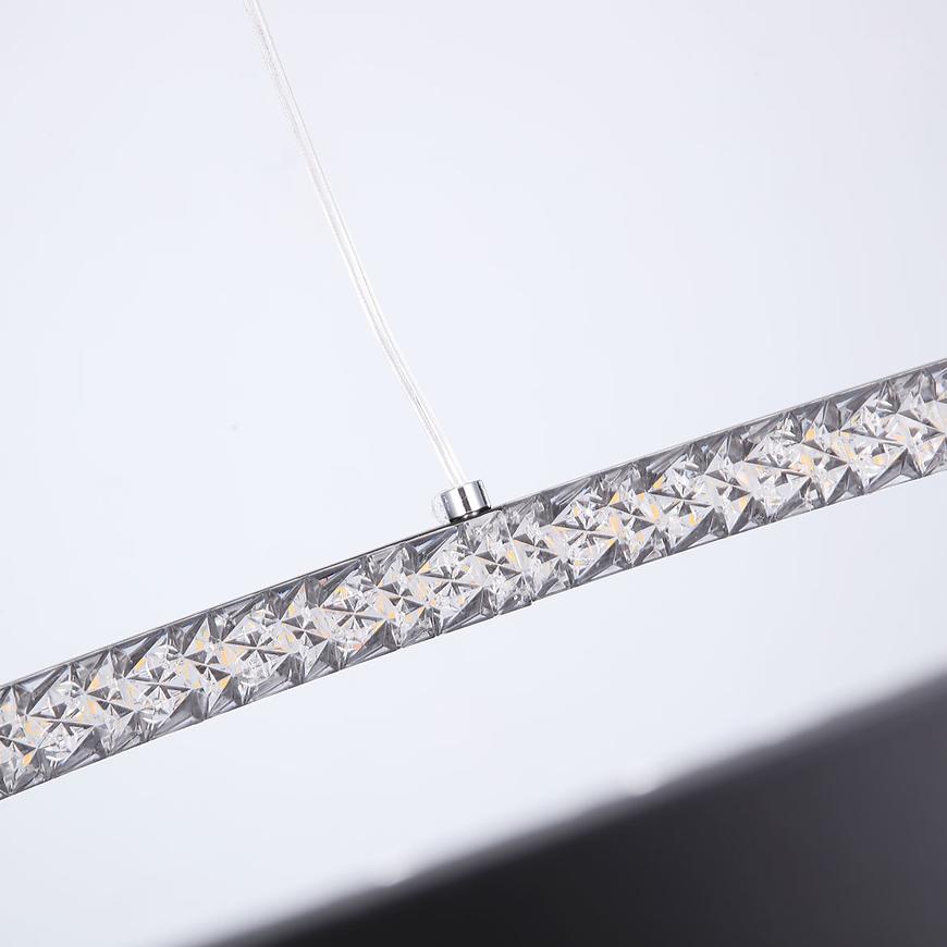 Dwa punktowe źródła światła LED o mocy 48W gwarantują jasne i równomierne oświetlenie, podkreślając detale i nadając wnętrzu nowoczesny charakter. Regulator wysokości umożliwia dostosowanie lampy do konkretnego pomieszczenia, co sprawia, że staje się ona funkcjonalnym elementem aranżacji.