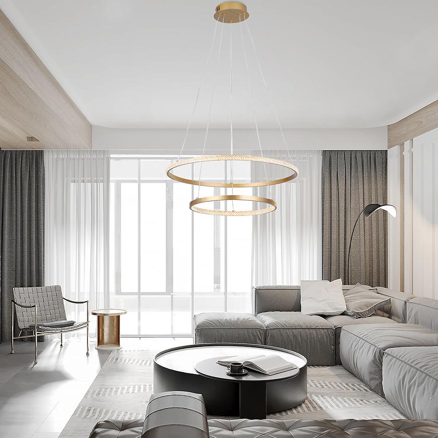 Dwa punktowe źródła światła LED o mocy 48W gwarantują jasne i równomierne oświetlenie, podkreślając detale i nadając wnętrzu nowoczesny charakter. Regulator wysokości umożliwia dostosowanie lampy do konkretnego pomieszczenia, co sprawia, że staje się ona funkcjonalnym elementem aranżacji.