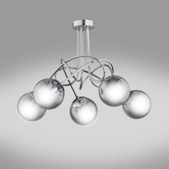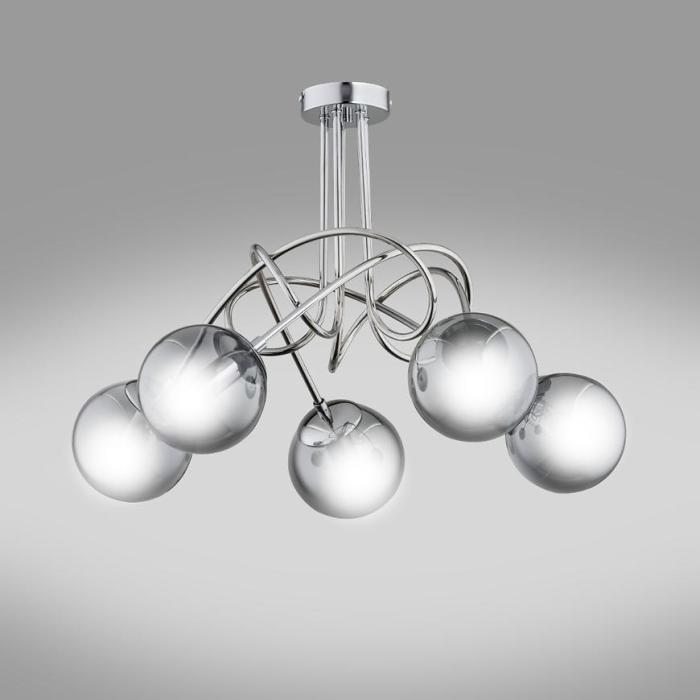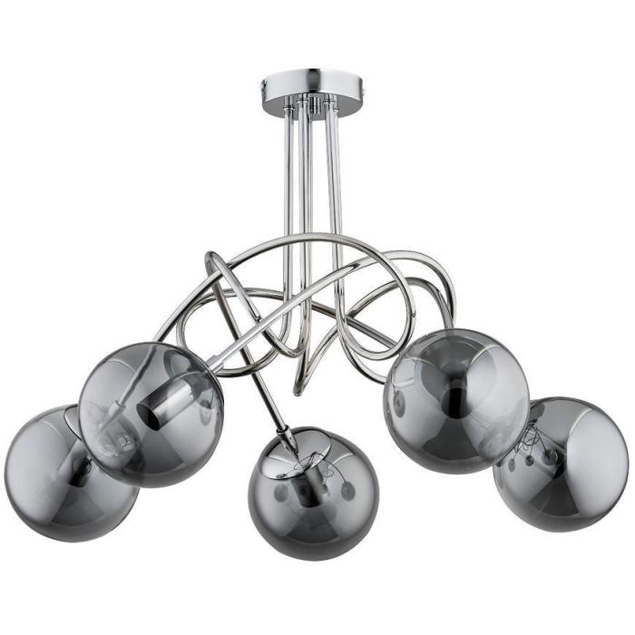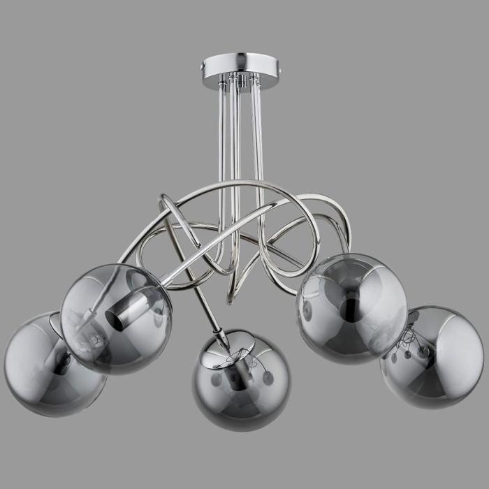 Lampa wisząca metalowa w kolorze chromu ze szklanymi kloszami.