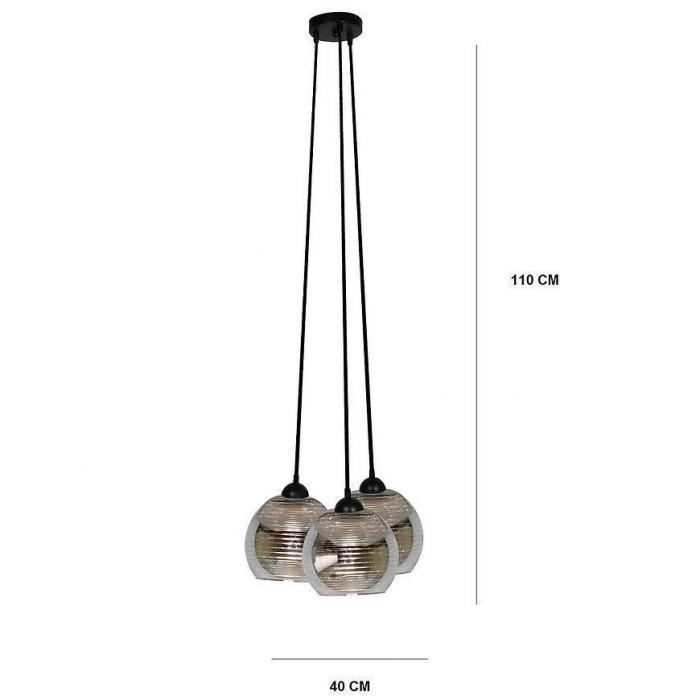 Designerska lampa Trio wpisze się w nowoczesne, ale także klasyczne wnętrza. Lampa posiada trzy punkty świetlne, zamknięte w ozdobnych, szklanych kloszach w kształcie kul. Wysokość lampy można wyregulować podczas montażu i dostosowac ją do wysokości całego pomieszczenia. Lampa nie tylko spełni ozdobną rolę, ale także odpowiednio doświetli pomieszczenie. Do lampy nalezy dokupić żarówki we własnym zakresie.