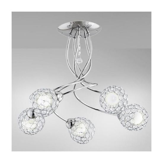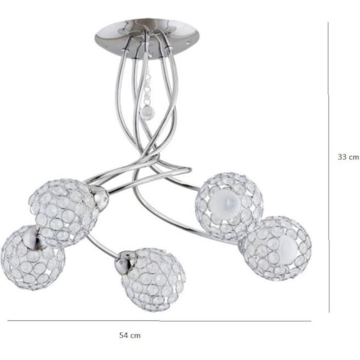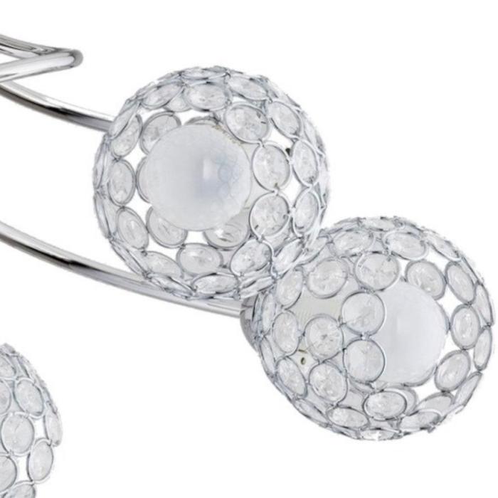 Lampa sufitowa metalowa w kolorze srebrnym oraz klosze ozdobione kryształkami.