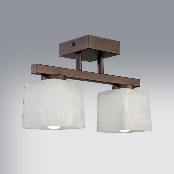 Lampa sufitowa wykonana z metalu w kolorze brązowym.