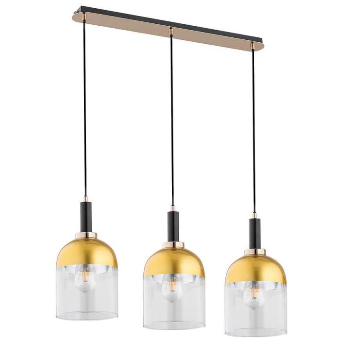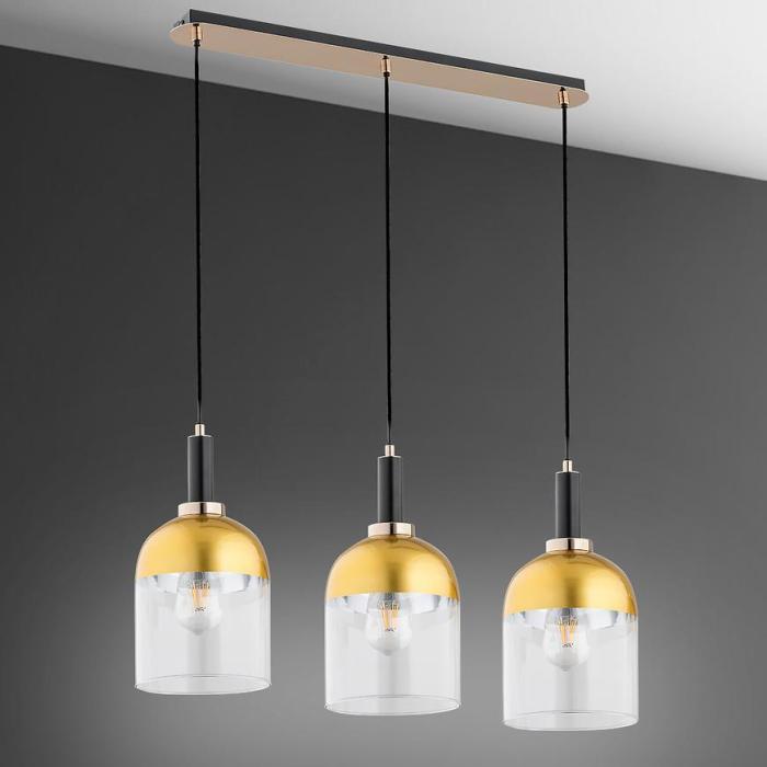 Lampa wisząca metalowa w kolorze czarnym/złotym ze szklanymi kloszami.