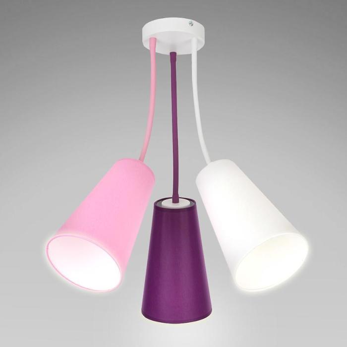 Stylowa i nowoczesna lampa będzie idealnym dodatkiem, szczególnie do pokoju młodzieżowego lub dziecięcego. Posiada trzy miejsca na źródła światła z gwintem E27. Konstrukcja to połączeni metalu, tworzywa i tkaniny.