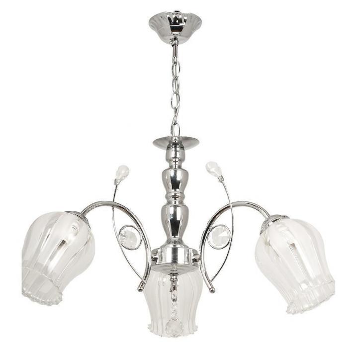 Elegancka lampa, w nowoczesnym wydaniu dopełni każde wnętrze. Lampa posiada trzy punkty świetlne, zamknięte w kielichowych, ozdobnych kloszach. Metalowy stelaż lampy jest chromowany, a elementy wykończeniowo-ozdobne wykonane są ze szkła. Podczas montażu można dostosować wysokość lampy do pomieszczenia.
